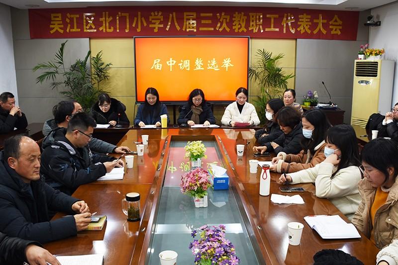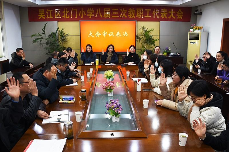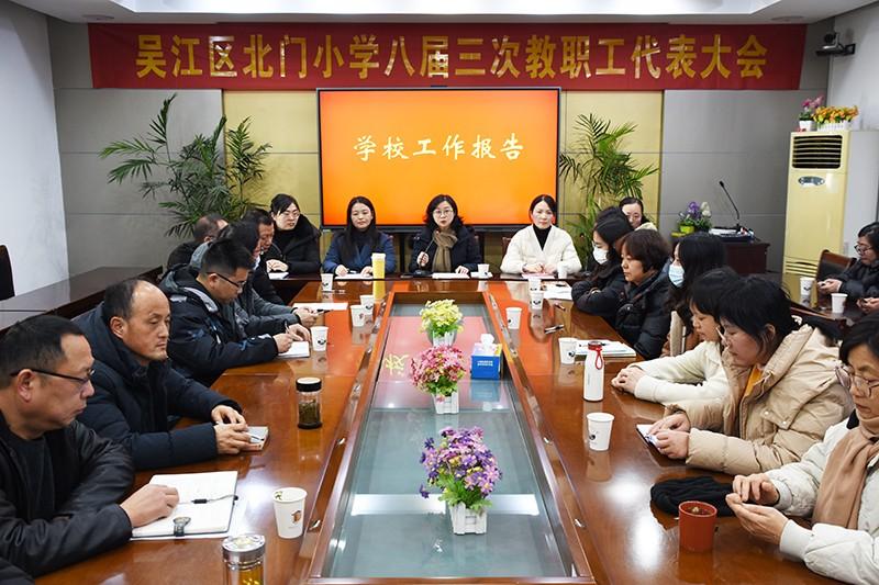 为了贯彻落实习近平新时代中国特色社会主义思想和二十大会议精神,充分发挥工会组织职能,让教职工积极参与到学校管理中,为学校的发展谏言献策,使学校在制度化建设方面步入一个新的台阶,12月22日下午13点,吴江区北门小学第八届第三次教职工代表大会在庄严的国歌声中拉开帷幕。