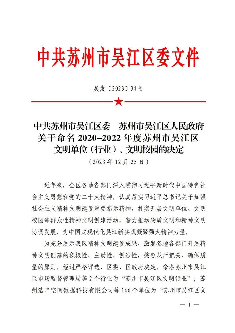 热烈祝贺我校获评2020-2022年度苏州市吴江区文明校园