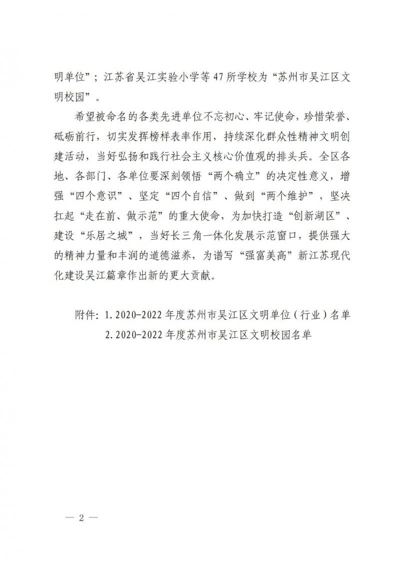 2020-2022年度苏州市吴江区文明校园