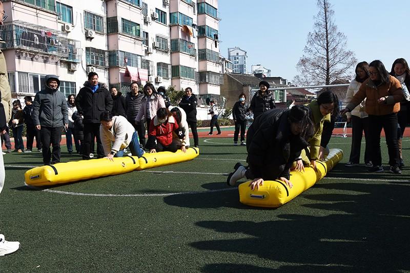 比赛场上,每一位教师笑容满面,精力充沛,朝气蓬勃。比赛主张“趣味交流第一,比赛竞技第二”的原则。趣味比赛设“同舟共济”、“沙包投准”、“袋鼠运瓜”三个项目。每位教师都积极踊跃地报名参加各项比赛项目。