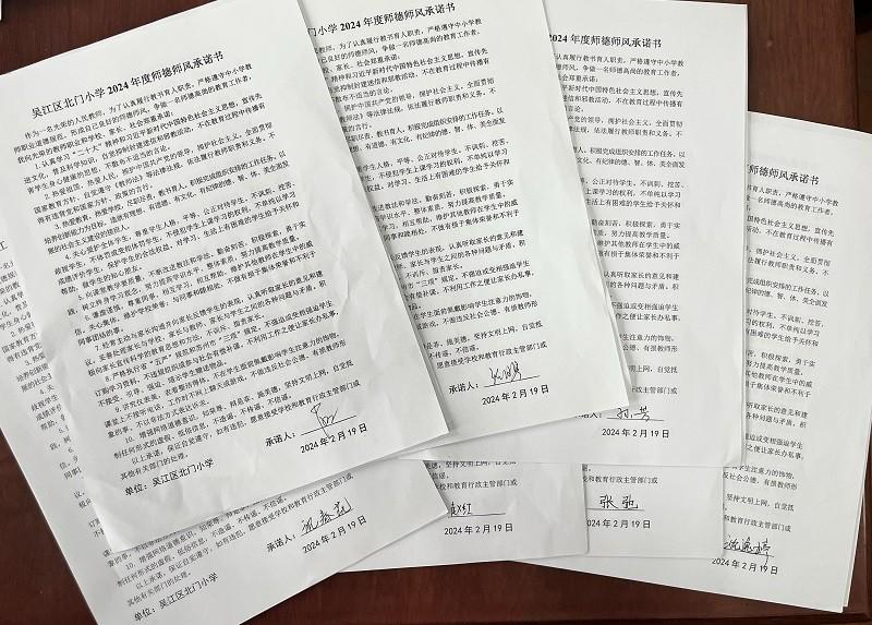 随后,为更好地帮助教师规范从教行为,提升教师职业道德素养,全体教师共同签订教师师德师风承诺书。每一位教师慎重地在承诺书上签上自己的名字,明确履行立德树人的神圣职业,维护教师的职业形象,将承诺践行于工作生活中。凝心聚力、不忘初心,以积极的工作态度,饱满的工作热情,投入到新学期的各项工作中。