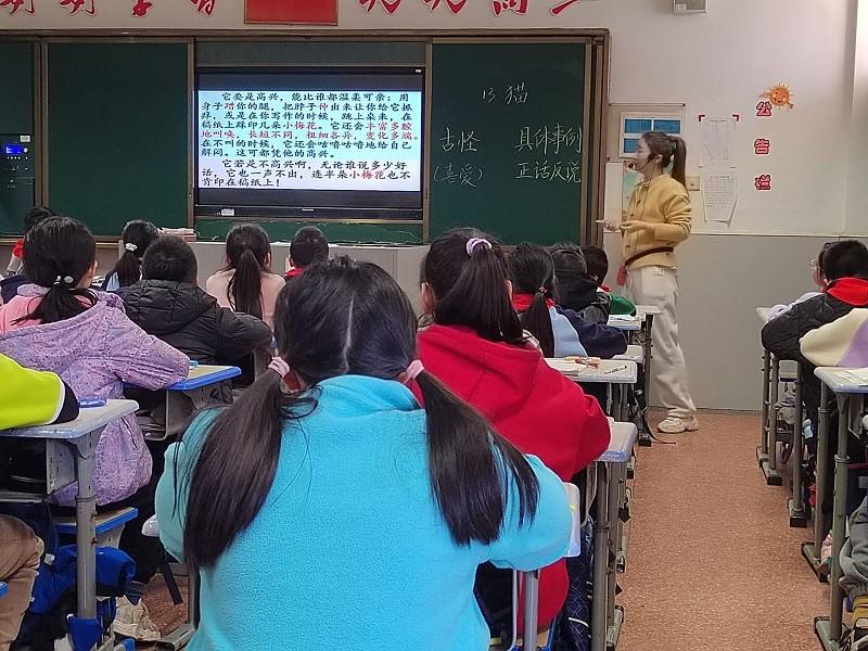 3月27日,语文教研组开展磨课研课活动,本次活动由郝梦霞老师执教四年级课文《猫》。