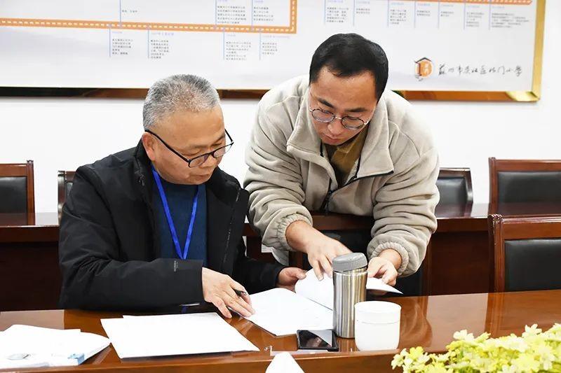 两位督学来到会议室听取汇报并检查相关资料,他们对照指标体系,严谨审查学校管理制度、执行规范落实、安全台账等各项文档。一本本翻阅,一页页审视,用“火眼金睛”找亮点、查不足,让办学过程可视化、有据依循。