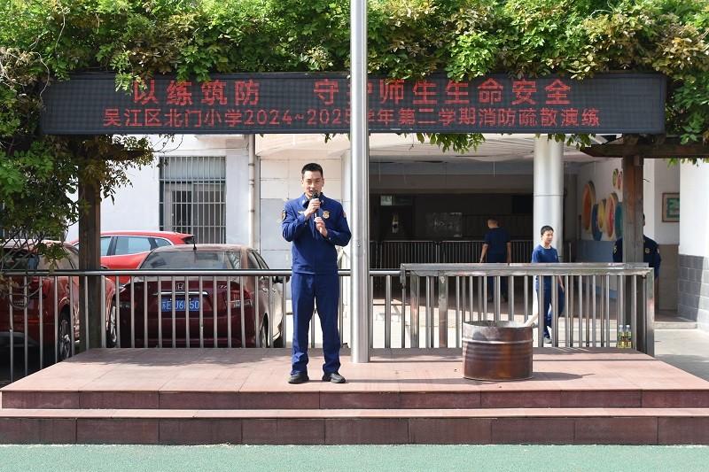 以练筑防 守护师生生命安全——北门小学2025 年春季消防疏散演练