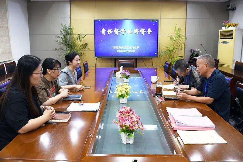 2025年9月18日上午,责任督学沈志良、徐根泉一行莅临北门小学,开展“1+X”常规督导检查,肖晶校长全程陪同。