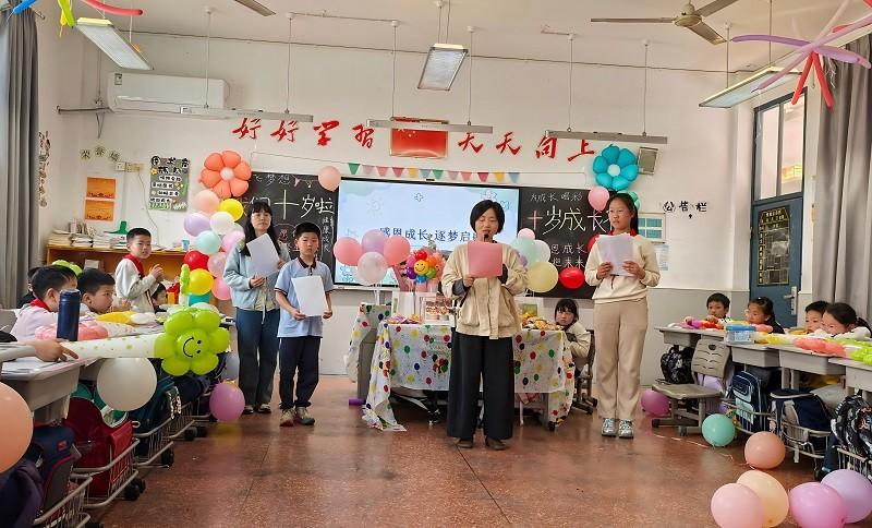 关工委退休教师翁建新满怀深情走进活动现场,为孩子们送上成长祝福。翁老师寄语队员们懂得感恩、心怀梦想,珍惜美好的学习时光,以乐观向上的心态面对挑战,以勤奋踏实的态度汲取知识,努力成长为品德优良、体魄强健、乐学善思的新时代少年。
